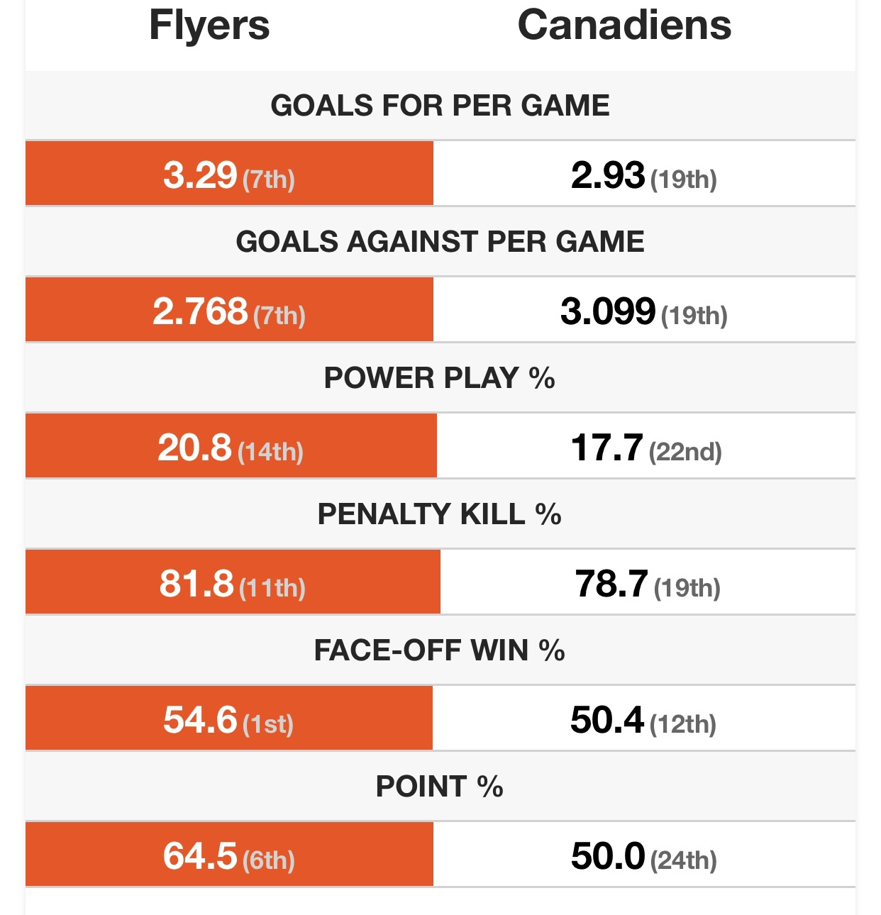 Team stats wise the Flyers have the Habs beat in every category. The Flyers also won the season series against the Habs 2-1-0. By no mean does this mean that Montreal will be a push over. Montreal just took the Sidney Crosby led penguins out in just 4 games in a best of five series. The key factor in that series was Carey Price playing lights out in net only allowing 6 goals on 134 shots for a SV% of .955. The Flyers will have their work cut out for them while trying to solve Price.